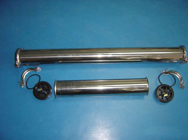 產(chǎn)品簡述: 反滲透膜殼是反滲透、納濾、超濾等裝置的配套產(chǎn)品,外殼采用304無縫不銹鋼鋼管制造,內(nèi)桶件為不銹鋼、ABS增強工程塑料,NBR橡膠O型閥。耐壓力:3MPa,適用溫度:0℃-